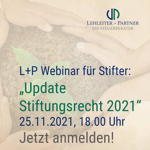 am 25.11.2021 um 18 Uhr. Dr. Stefan Humm von der Kanzlei Legavis in Weinheim wird einen Überblick über die Mitte des Jahres verabschiedete Reform des Stiftungsrechts geben. Prof. Dr. Robert Lehleiter analysiert die neuesten Entwicklungen im Stiftungssteuerrecht.